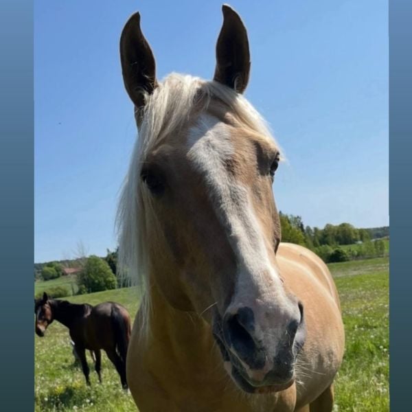 Tobbe fångar uppmärksamhet p.g.a sin unika färg och med sitt charmiga lynne. Du får bekanta dig med Tobbe på terräng- och duo-lektioner.